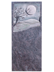 Grabmal aus ORION im Gletscherschliff mit einer farbigen Blumenranke mit Schmetterlingen
